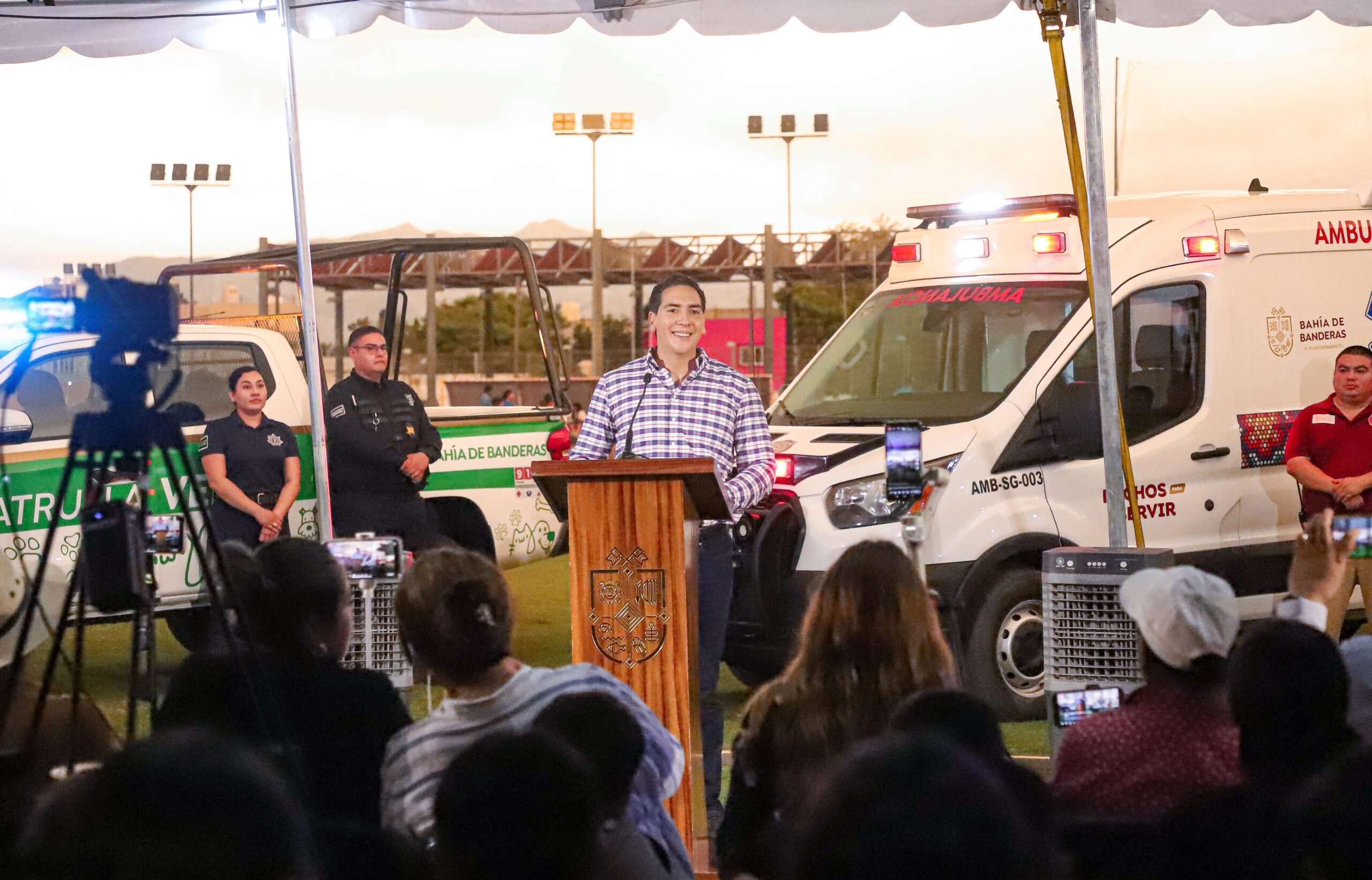 Durante su mensaje, el alcalde informó sobre la entrega formal de la nueva Patrulla Verde, compromiso cumplido para atender denuncias por maltrato animal y fortalecer el trabajo a favor del bienestar de las especies en el municipio. “Bahía de Banderas ya cuenta con Patrulla Verde. Vamos a atender estas denuncias, vamos a proteger a nuestros animalitos”, afirmó.