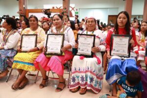 En esta primera edición del Día Estatal de la Mujer Indígena en Nayarit, se reconoció a mujeres destacadas de los pueblos originarios Meshikan, Na’ayeri, Wixárika y O’dam, por su lucha, sabiduría y compromiso comunitario. Las galardonadas fueron: Fidencia de Jesús Juárez, por preservar la lengua y cultura Meshikan; Cindy Elizabeth Chávez Silverio, por su labor docente y defensa de los derechos de las mujeres Na’ayeri; Angelina Carrillo Muñoz, por promover el arte, la lengua y la representación política del pueblo Wixárika; y Victorina Morales Soto, por su destacada trayectoria artesanal y cultural como mujer O’dam.