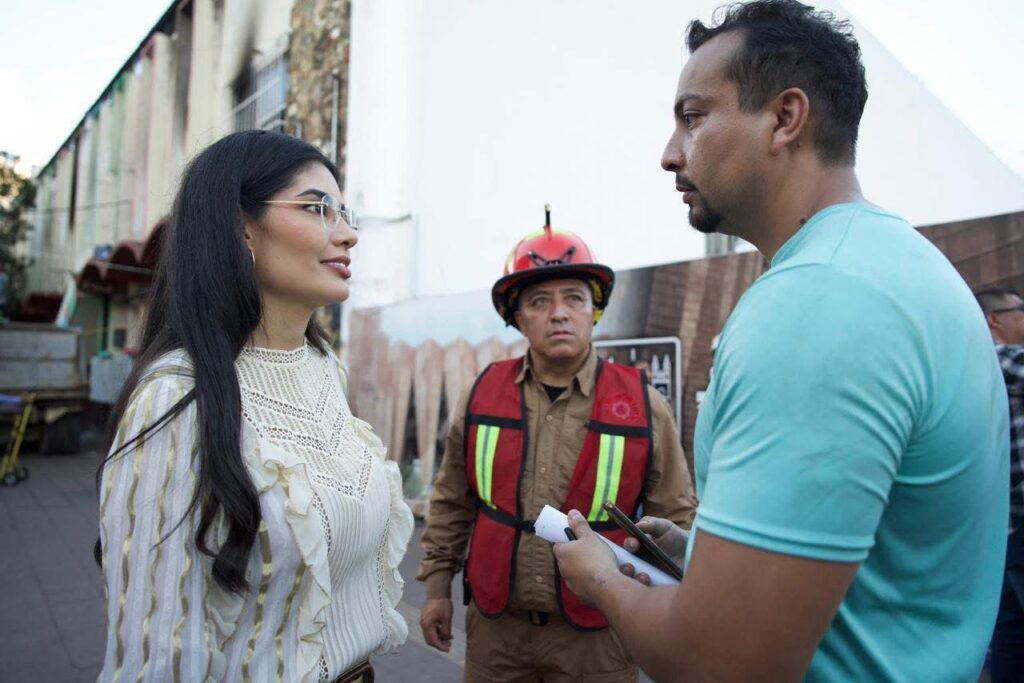 Tepic.- La presidenta municipal de Tepic, Ing. Geraldine Ponce, encabezó las labores de apoyo a las y los locatarios del mercado Juan Escutia, quienes este miércoles comenzaron con la recuperación de su mercancía perecedera, luego del incendio registrado la noche de este martes.